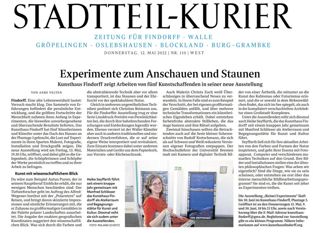 (Keine) Experimente – Bericht im Weser-Kurier vom 12.05.2022 12. May 202217. June 2022 ~ phototio Teilen mit: Click to email a link to a friend (Opens in new window) Email Like Loading... Related