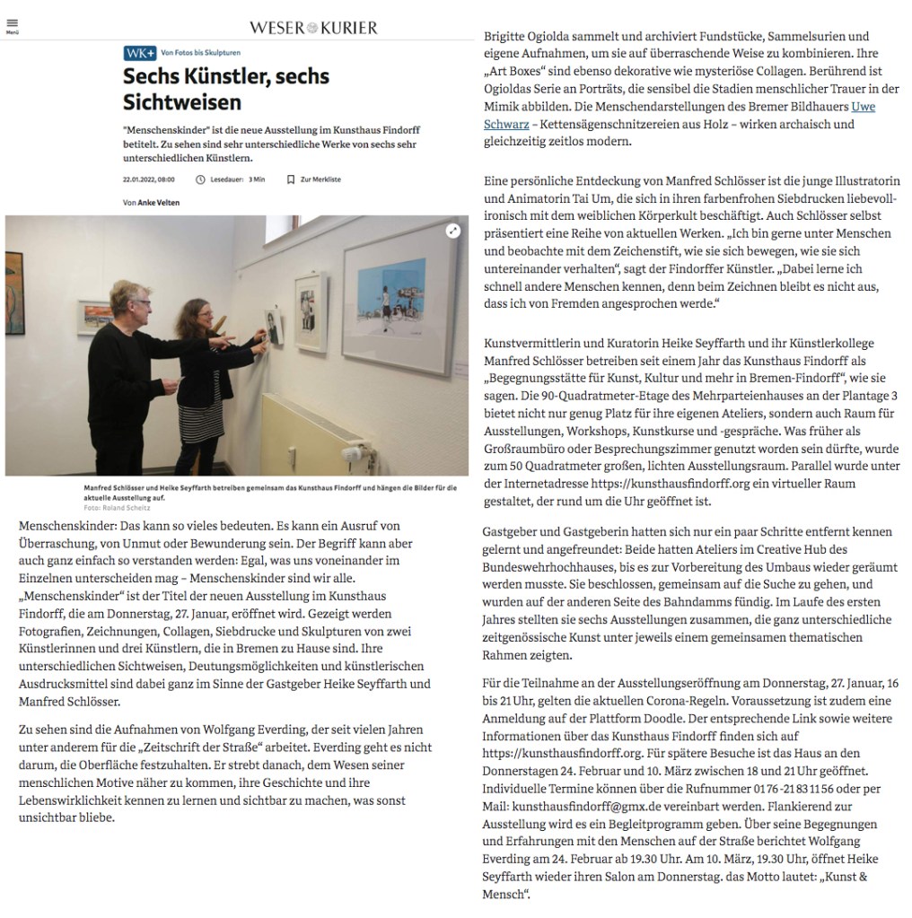 Ausstellung im Kunsthaus Findorff vom 10. Juli bis zum 25. August 2022(Öffnungszeiten nur nach telefonischer Vereinbarung unter 0176 21831156)